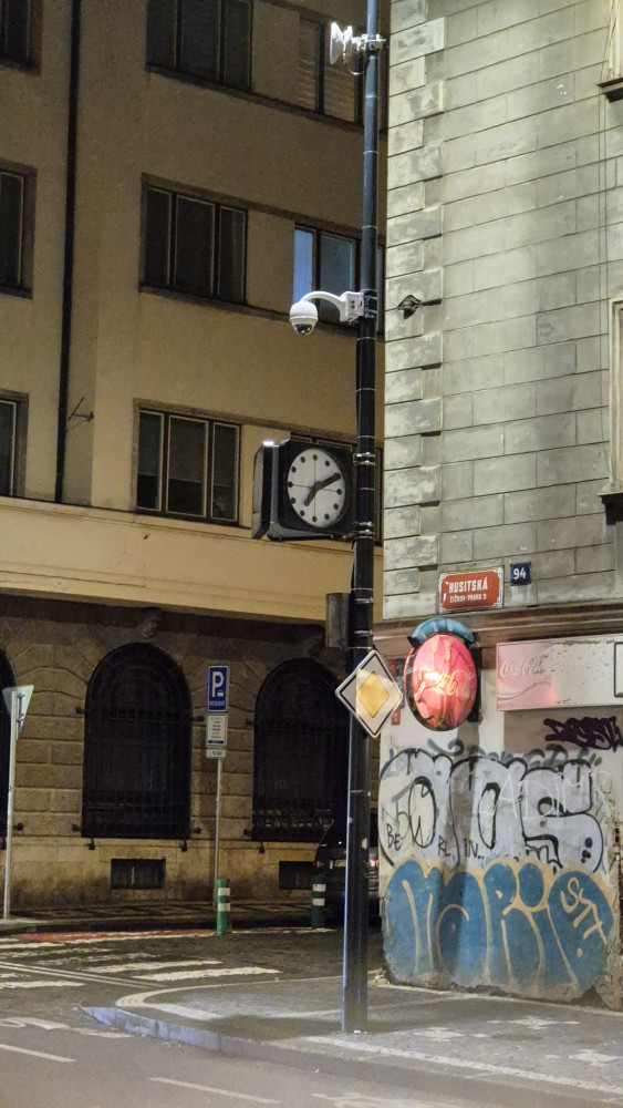 Dobry den, na rohu Tachovskeho namesti a ulic Husitska a Chlumova nesviti hodiny umistene na sloupu verejneho osveteni. Je prosim mozne tuto zavadu opravit?