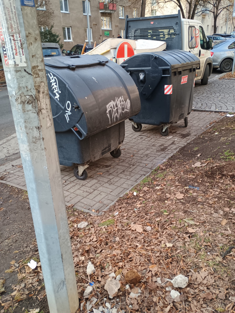 Dobrý den. Bohužel nějaký hodný spoluobčan nechal u kontejnerů pro komunální odpad matraci a další díly od postele. Včera tuto matraci použil pro přespání bezdomovec tak, že si ji přetáhl ke garažím našeho domu, kde ji použil pro přespání. Sousedka mne poprosila o přemístění, jelikož potřebovala vyjet z garáže. Bezdomovec se nám tam stále pohybuje a snaží se dál přespávat.