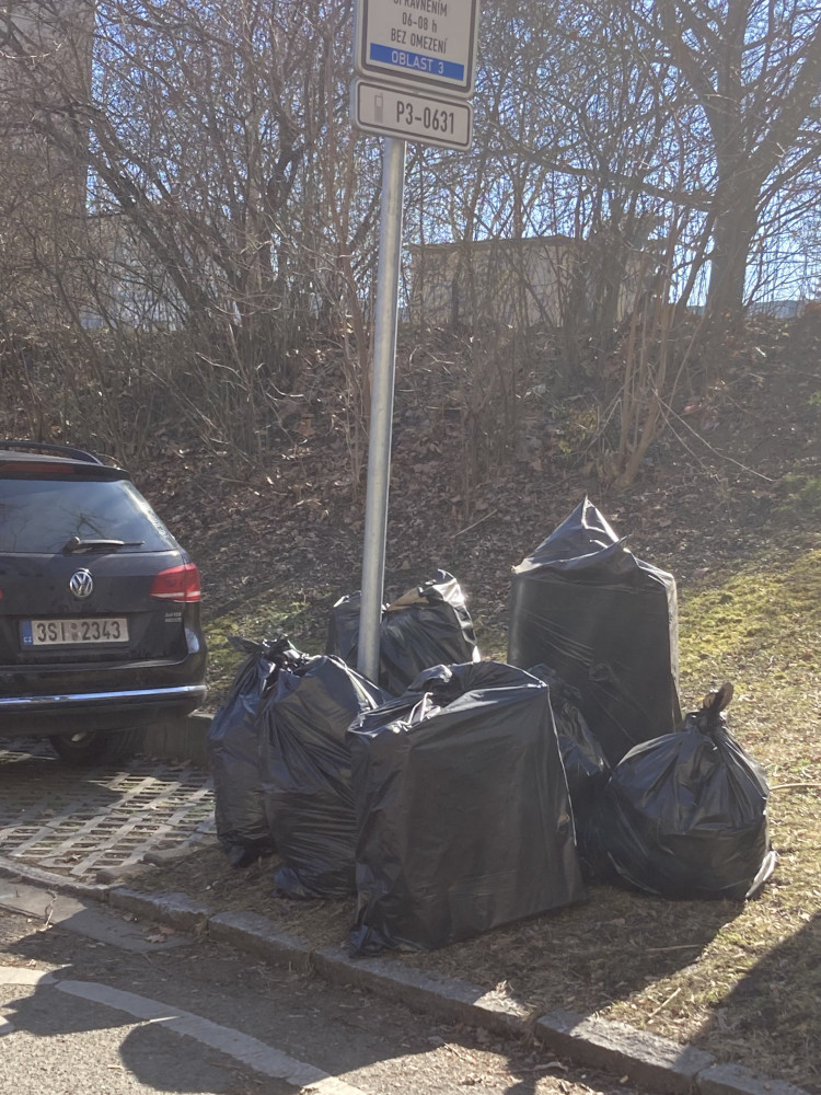 Černě pytle sem někdo odložil, prosíme o odstranění