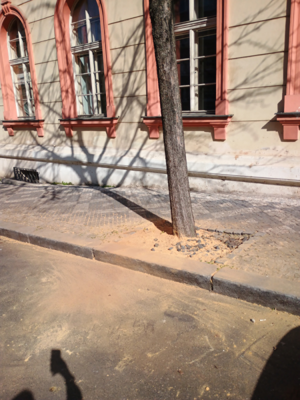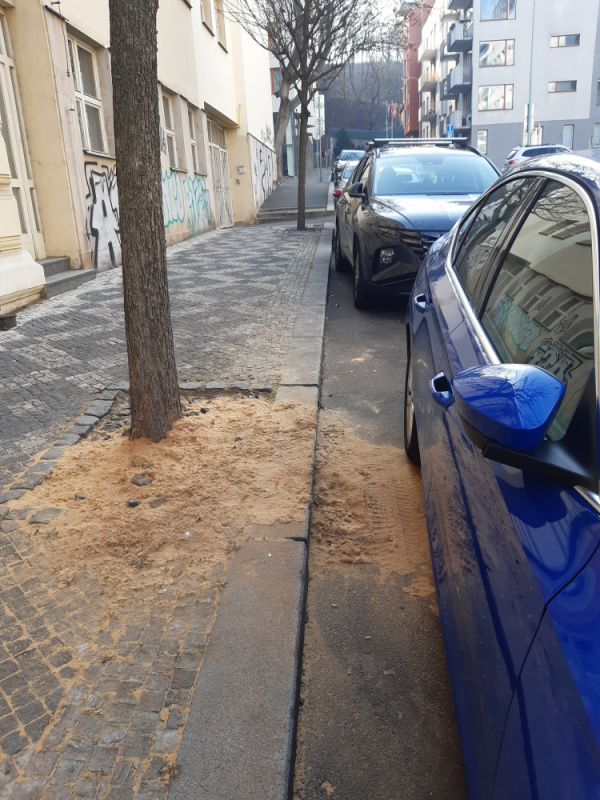 V ulici Českobratrská mezi domy 7 a 11 na straně Hudební školy hl. města Prahy je cosi vysypaného u stromu ... viz fotografie. Děkujeme za uklizení.