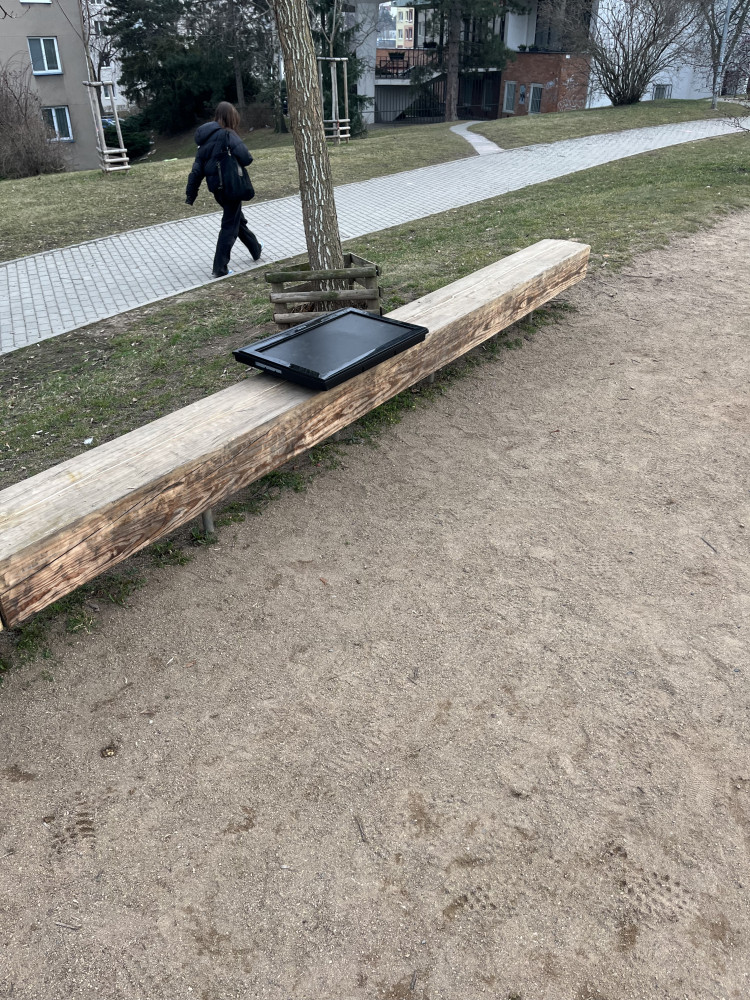 Odlozeny monitor/tv na lavicce.
