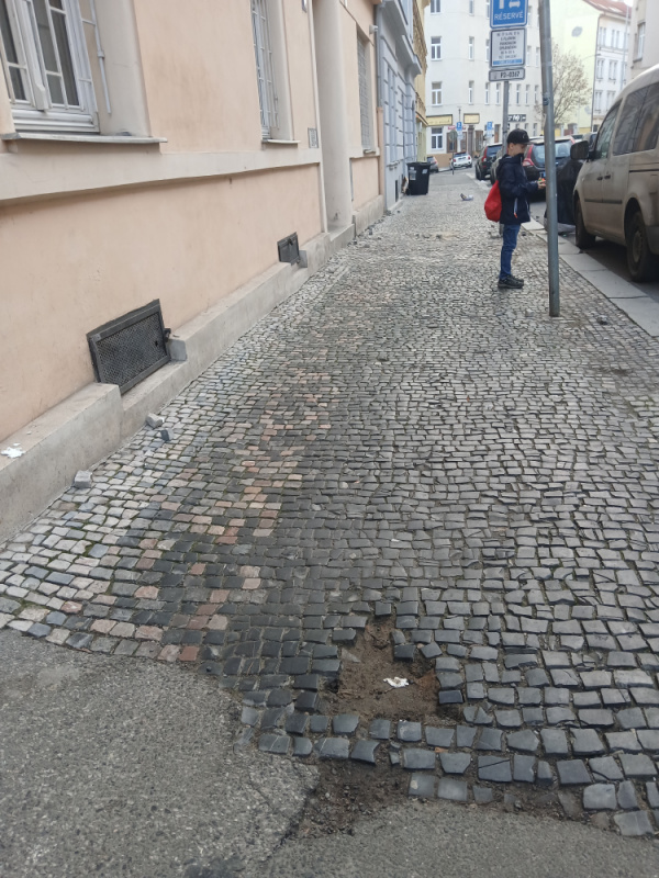 děkujeme za Váš podnět. Předali jsme ho k vyřešení organizaci TSK hl.m. Prahy, která údržbu chodníků zajišťuje. Požadavku byla v systému TSK přiřazena evidenční značka WR0QS5FI.