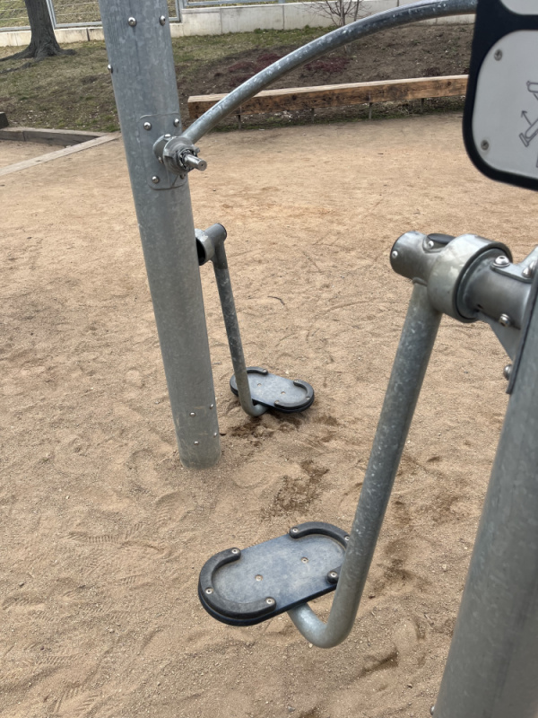 Workoutove hriste - poskozene vybaveni. Hrozi nebezpeci urazu. Vzdy to nekdo nasadi a pak lide neznali stavu, na tom cvici a spadne to.