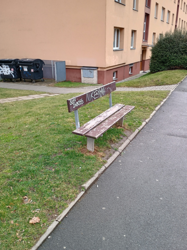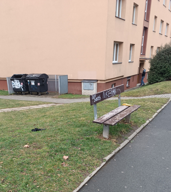 Nepořádek u domu Na vrcholu 8, okolí lavičky