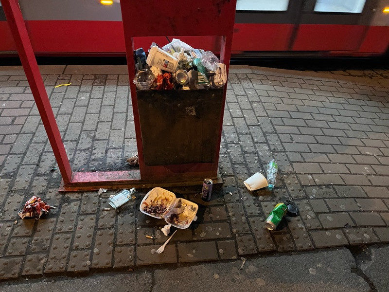 Peoblém trvá, viz včera, 16.4.2025 21:30 koš opět přeplněn a odpadky na zemi okolo.