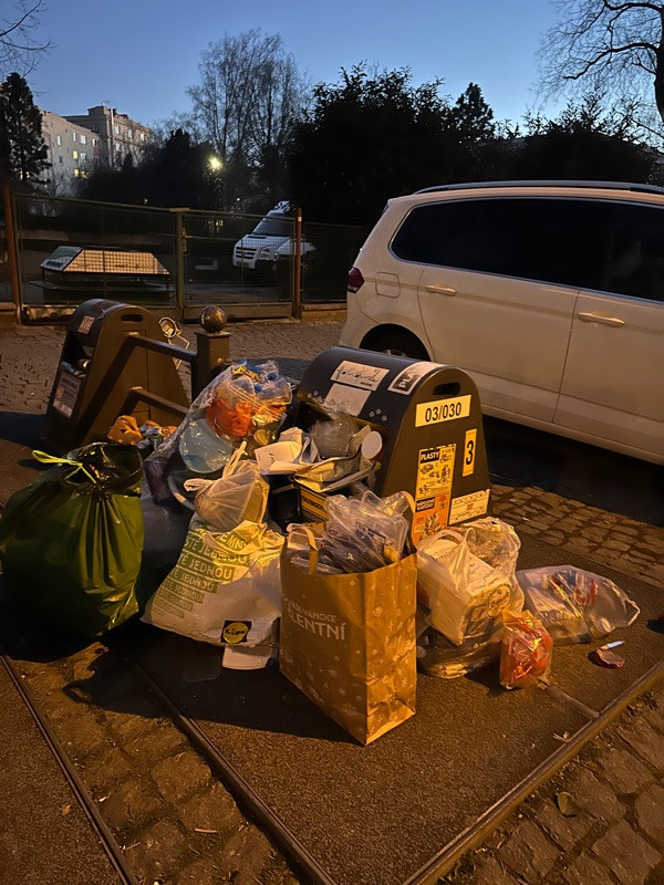 děkujeme za Váš podnět. Kontejnery na tříděný odpad jsou pravidelně vyváženy organizací AVE CZ, která současně odpovídá za pořádek okolo kontejnerů a za jejich funkčnost. Váš podnět předáváme kolegům z oddělení správy komunálních služeb MČ Praha 3, kteří na svoz odpadu dohlížejí, nastavují frekvenci vývozu, apod.
