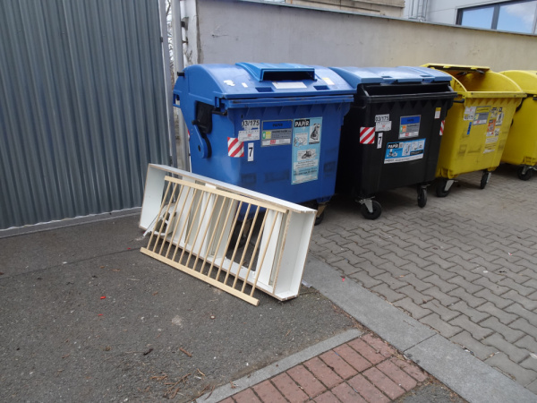 Dobry den, v ulici Zverinova je vyhozeny stary nabytek vedle nadob na trideny odpad. Prosim o uklid.