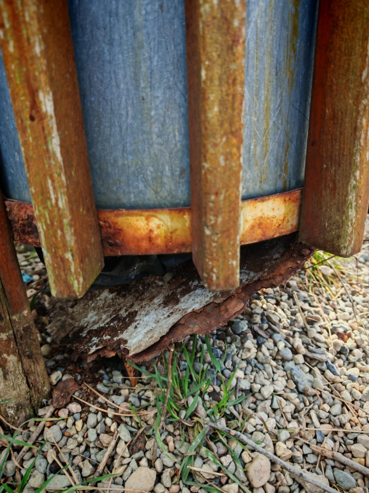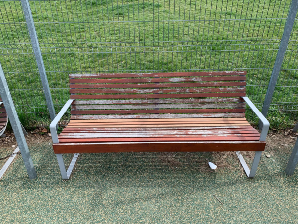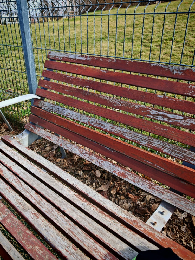 Odpadkový kos na hristi Parukarka ma zrzavou, ulomenou spodnu čast. Je umistnen pri drevenom vlacku. Lavička v horné časti pri skluzavkach je poškozena taky. Dekujeme za opravu.