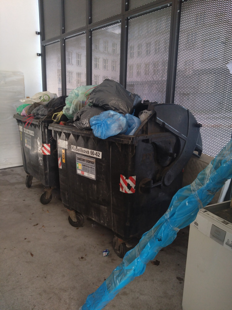 Pátek 23.3.2025 hrůza u popelnic,, Kubelíkova 66, Praha 3