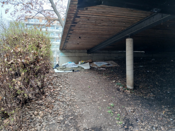 děkujeme za Váš podnět. Tento problém již evidujeme. Předali jsme ho už dříve k řešení kolegům z MČ Praha 3. Nocležiště lidí bez domova představují právně i sociálně složitý problém, který řeší mj. kolegové ze sociálního odboru ve spolupráci s organizacemi, které lidem bez domova pomáhají, případně také ve spolupráci s Městskou policií. K Vašemu podnětu proto bohužel nemůžeme slíbit okamžité vyřešení .