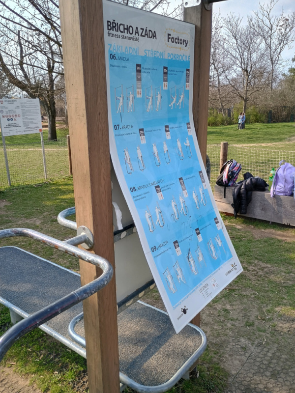 Nalomene kovove tabule se cviky. Cvicici hriste Ulita