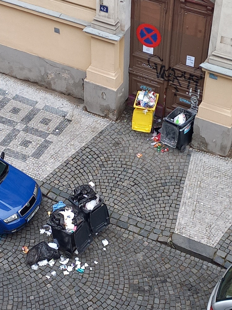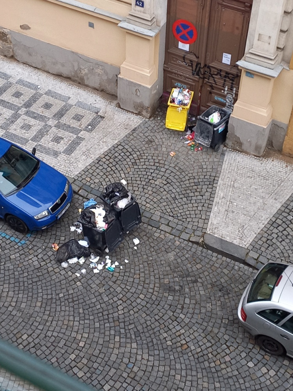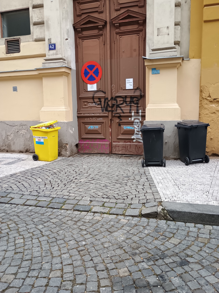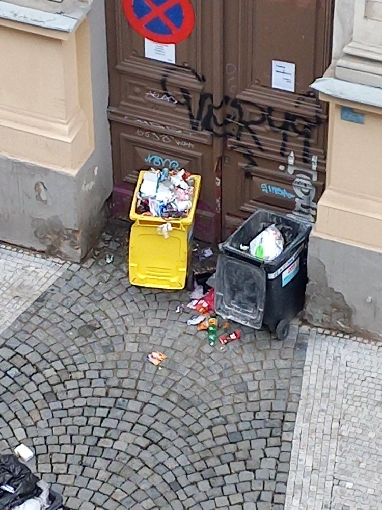 Prosím o úklid a nenechávat nádoby venku. Stará škola na Havlíčkově náměstí.