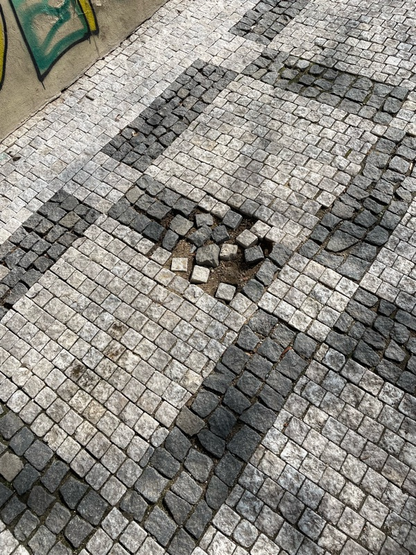 děkujeme za Váš podnět. Tento problém už evidujeme. Předali jsme ho k vyřešení organizaci TSK hl.m. Prahy, která údržbu chodníků zajišťuje. Požadavku byla v systému TSK přiřazena evidenční značka WRX774WP.