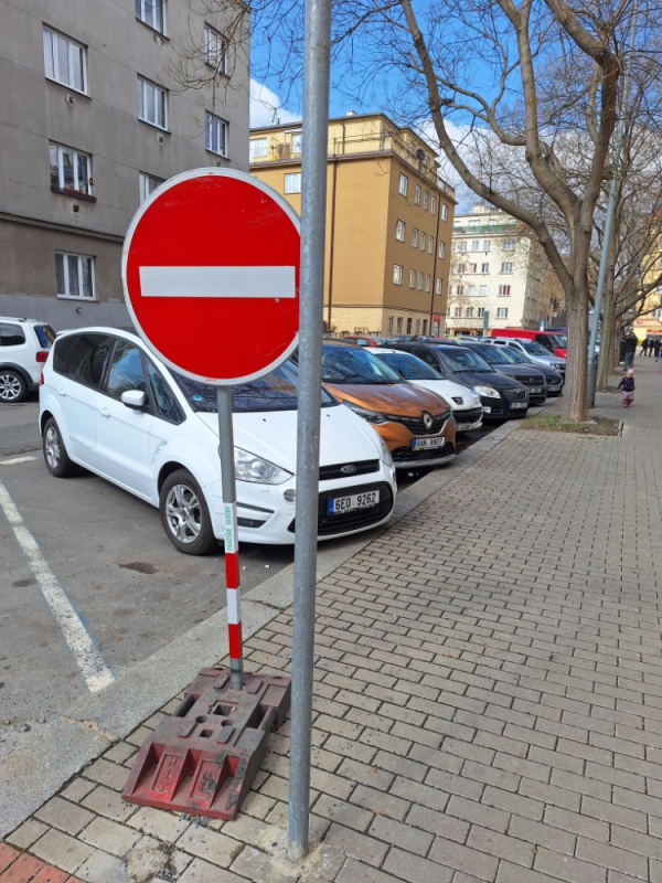 děkujeme za Váš podnět. Předali jsme ho k vyřešení organizaci TSK hl.m. Prahy, která má správu dopravního značení hl. m. Prahy na starosti. Požadavku byla v systému TSK přiřazena evidenční značka WRYQMT11. Podněty TSK můžete zadávat také prostřednictvím online formuláře: zavady.tsk-praha.cz/ .