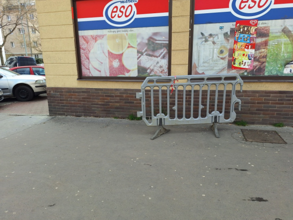 Zapomenutý zátaras - zůstalo po opravě komunikace ve Strážní ulici z loňského roku - značka se pomalu stěhuje od silnice k potravinám.
