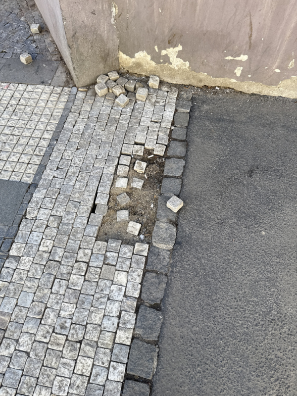 děkujeme za Váš podnět. Předali jsme ho k vyřešení organizaci TSK hl.m. Prahy, která údržbu chodníků zajišťuje. Požadavku byla v systému TSK přiřazena evidenční značka WRXC14EV.