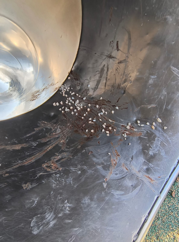 Dobrý den, na hřišti Vrch sv. Kříže ve skluzavce exkrement a kameny viz obrázek.