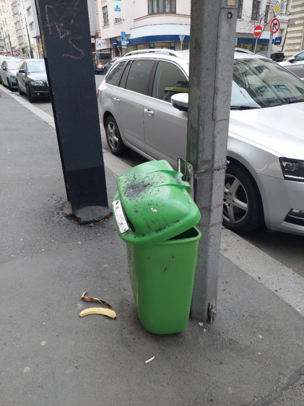 děkujeme za Váš podnět. Předali jsme ho k vyřešení organizaci TSK hl.m. Prahy, která má správu těchto zelených odpadkových košů na starosti.