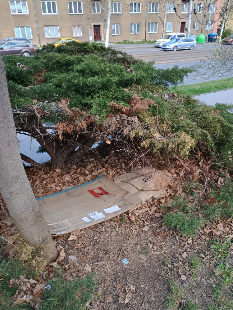 Dobrý den,máme mezi domy Hartigova 240 a Hartigova 242 v křoví nepořádek asi po bezdomovcích