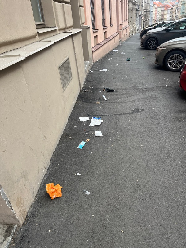 Dobrý den děkujeme za Váš podnět. Celá ulice byla poklizena partnerskou organizací.