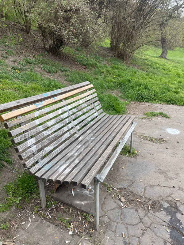 Chybí kousek lavičky, první vlevo, jakmile vyjdete po schodech nahoru. Děkuji