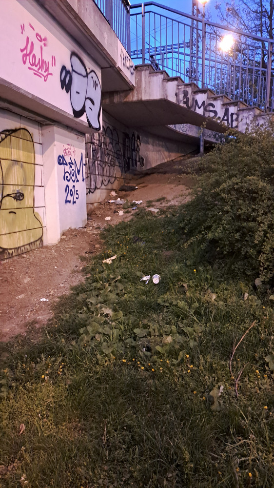 dle vyjádření vlastníka pozemku (Magistrát hl. m. Prahy), byla tráva prorůstající do chodníku již odstraněna a připravuje se úklid celého navazujícího (rozsáhlejšího) pozemku, na kterém bylo nalezeno i jakési nocležiště osob bez přístřeší.