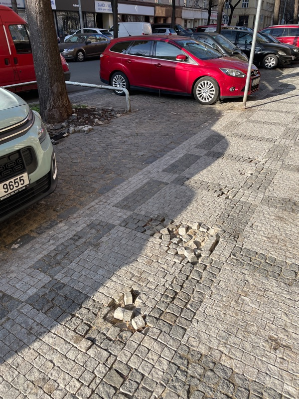 děkujeme za Váš podnět. Předali jsme ho k vyřešení organizaci TSK hl.m. Prahy, která údržbu chodníků zajišťuje. Požadavku byla v systému TSK přiřazena evidenční značka WRXXVV9N.