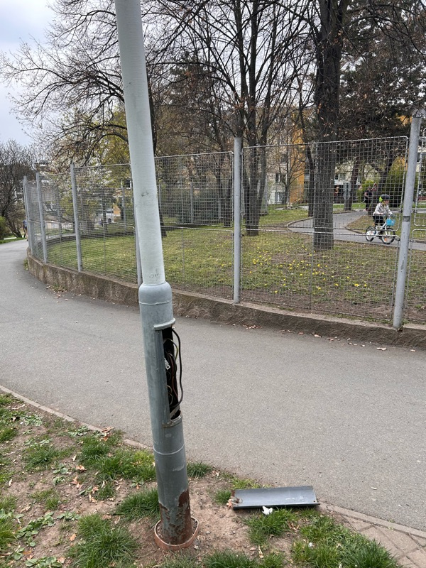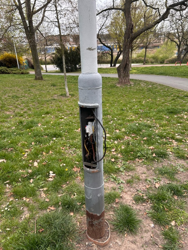 Odkrytá elektroinstalace lampy v blízkosti dětských hřišť