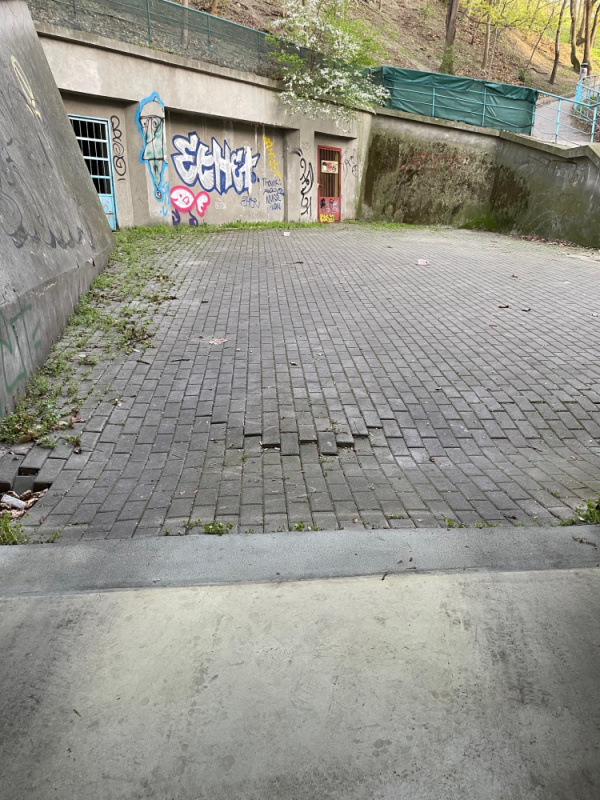 zatím se nám nepodařilo zjistit, kdo danou plochu spravuje. Dohledání jsme zaurgovali a po zjištění správce neprodleně zažádáme o opravu. Určitě Vás budeme zde o tom informovat.