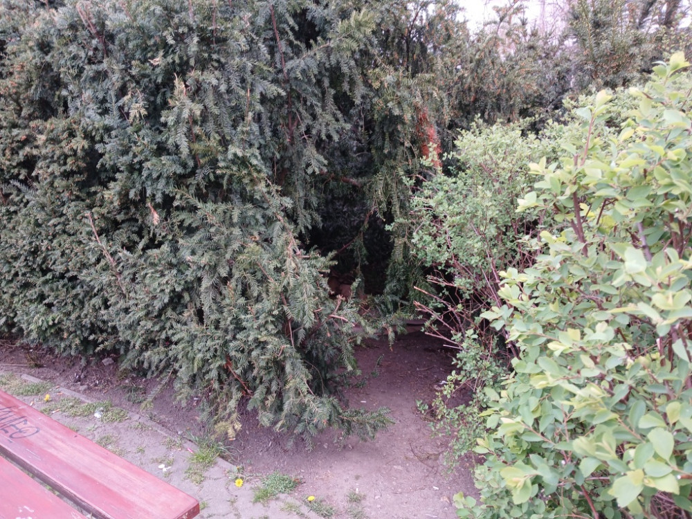 Žižkovo náměstí - proti škole v tisech bezdomovecke lezeni. Prosím zlikvidovat.