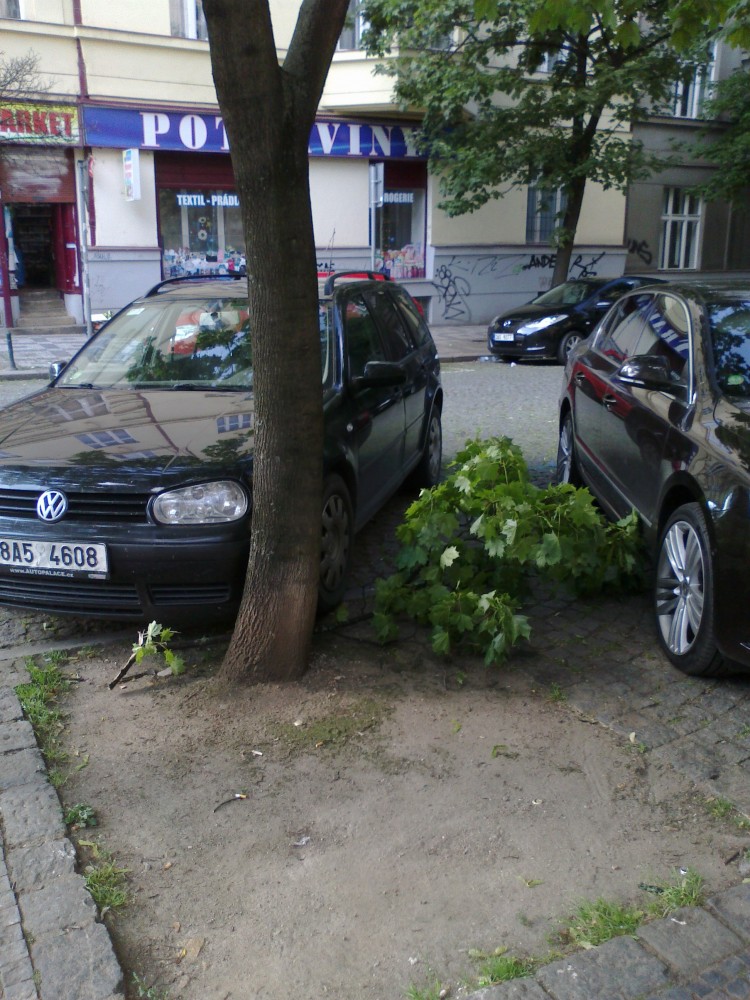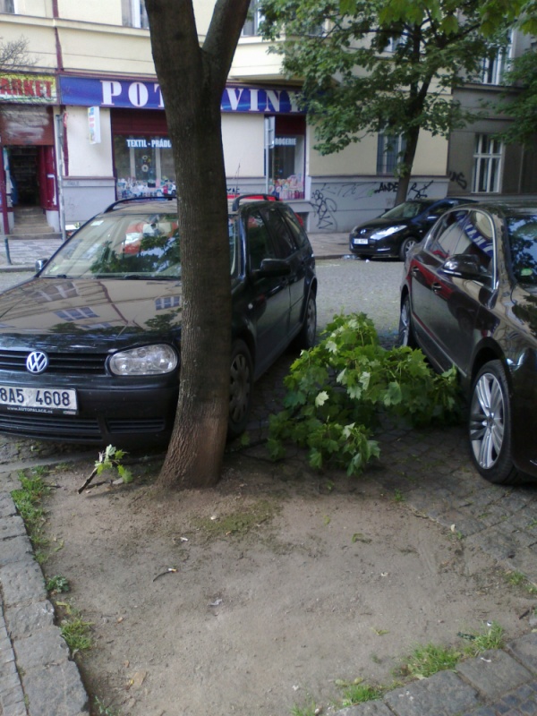 Roh Zvonařova a Slavíkova: ulomená větev - viz foto.