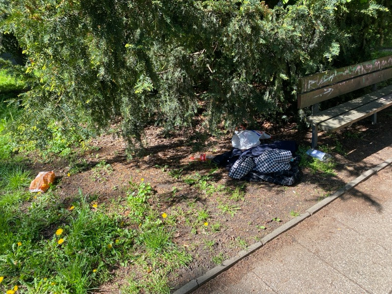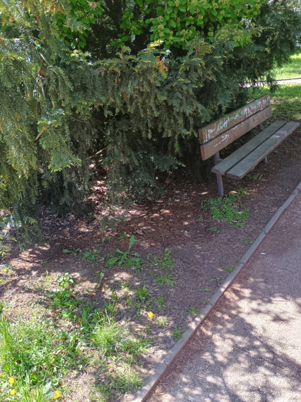 Neporadek u lavicky naproti detskemu hristi za vodarnou