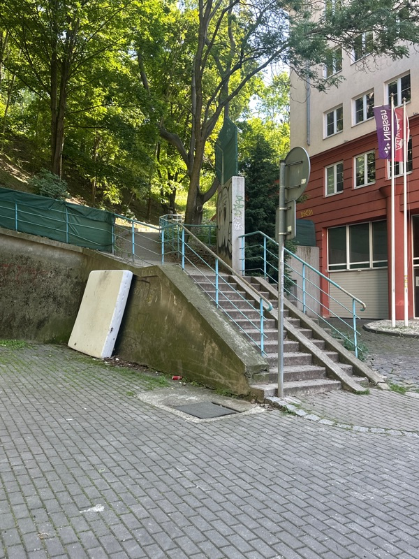 Odložená matrace u schodů do parku