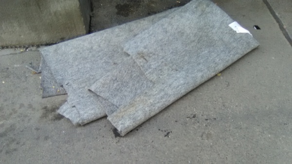 Koberec odložený na chodníku.