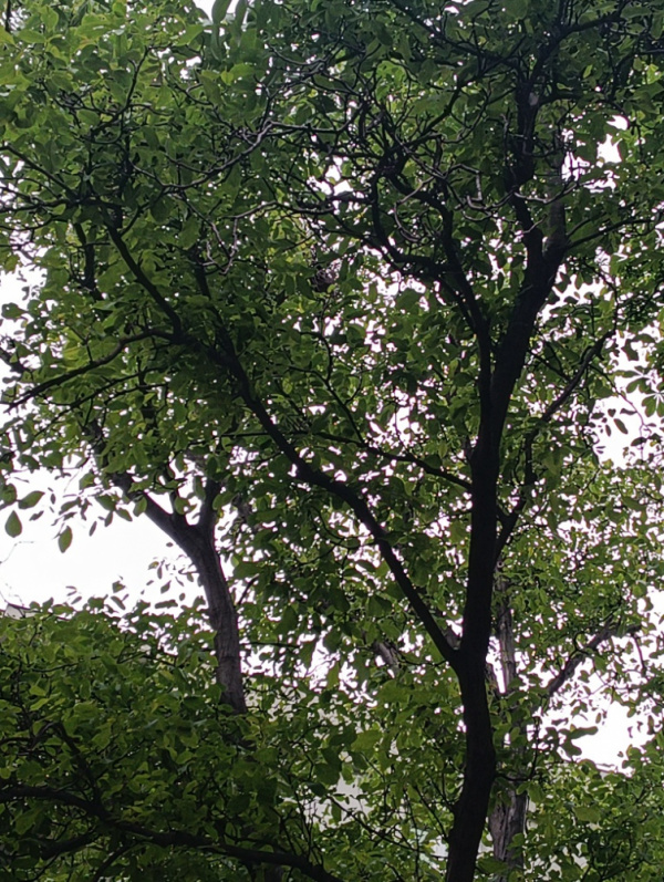 suchá větev na ořechů přesně nad dětskou houpačkou hrozí ženy mohla zranit dítě kdyby spadla !!!!!!!! ve vnitrobloku
