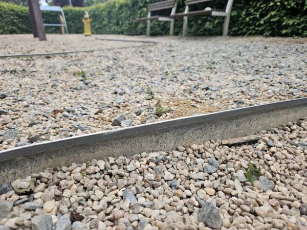 Železné rozdělovače na hřišti vyčnívají nad ostatními povrchy a jsou nejen pro děti nebezpečné.