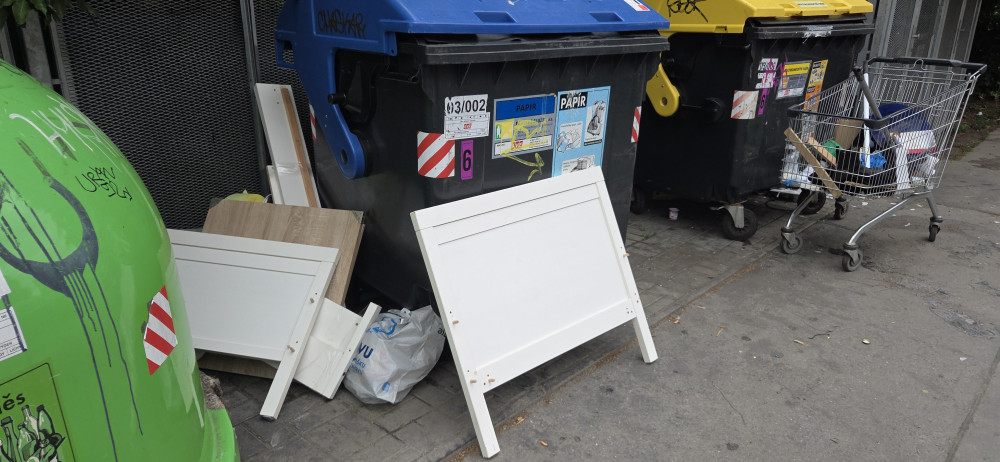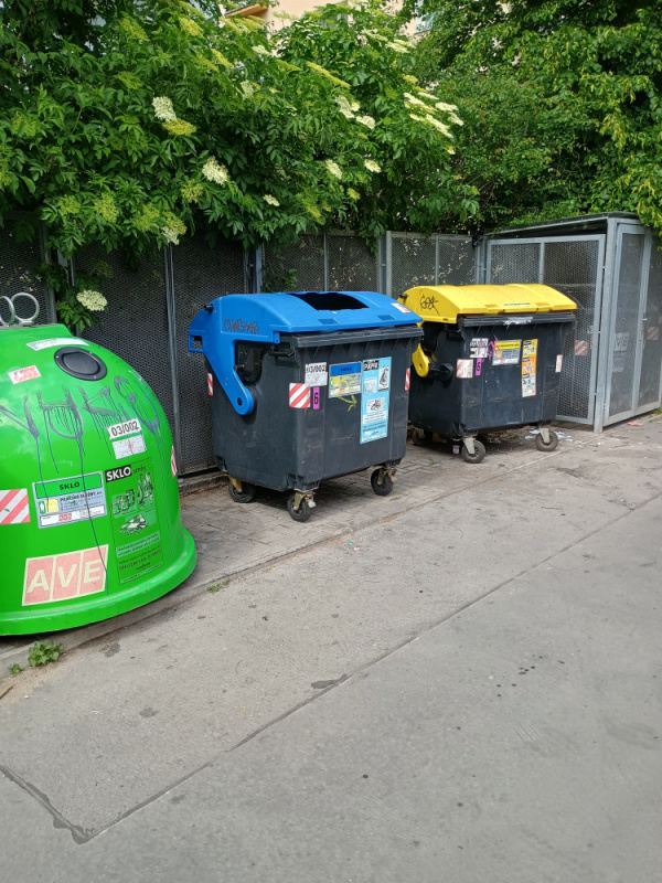 Neustale probíhající černá skládka v okolí kontejnerů u domu Jeseniova 131