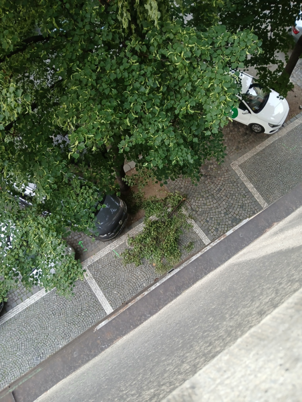 Zlonena vetev na chodniku