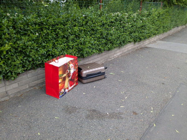 Věci odložené na chodníku.