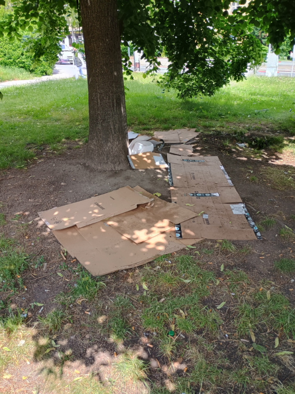 Pod stromem jsou nahazene kartony, prosím o zlikvidování.