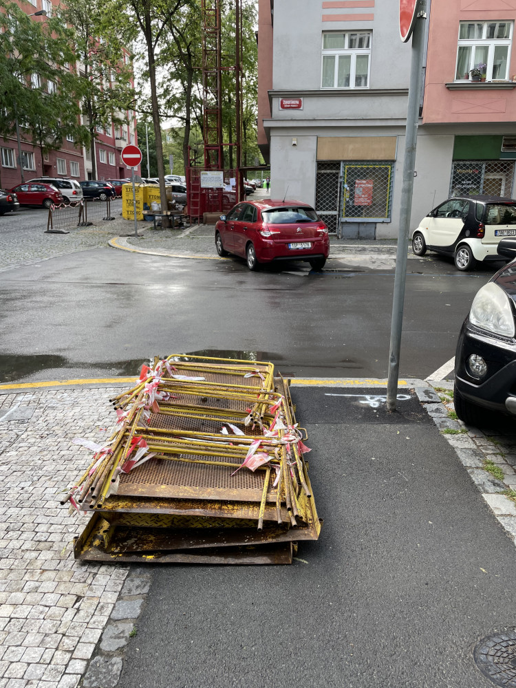 Na chodníku u křižovatky ulic Zelenky Hajského a Žerotínovy už více jak týden jsou volně loženy kovové (patrně přechody) zábrany. Chápu, že v Žerotínově se bude kopat, ale ty zábrany se dají umístit určitě na místo, kde méně vadí chodcům, opravdu jste si spletli chodník s překážkovou dráhou, prosím o rychlé řešení, chodník je od slova chodit a ne skákat přes překážky