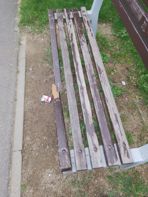Zlomené prkno u lavičky na Vyhlídkové cestě