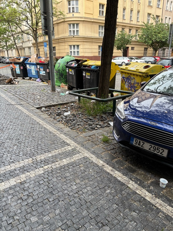 nepořádek kolem kontejnerů