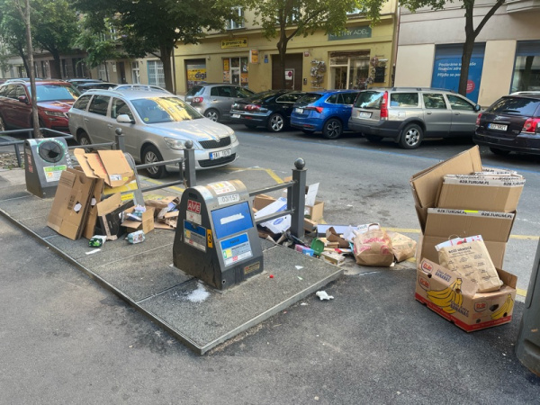 děkujeme za Váš podnět. Předali jsme ho organizaci AVE CZ, která kontejnery na tříděný odpad vyváží a za pořádek kolem kontejnerů odpovídá. Úklid jednotlivých stanovišť kontejnerů na tříděný odpad probíhá pravidelně podle stanoveného harmonogramu (od 6:00 do 22:00 každý den včetně sobot a nedělí).