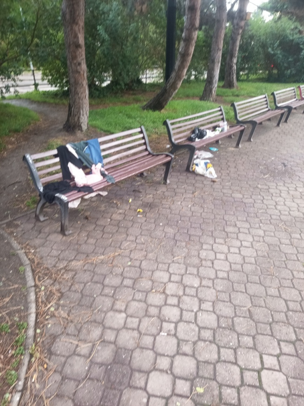 nepořádek na lavičkách ,park Jiřího z Lobkovic