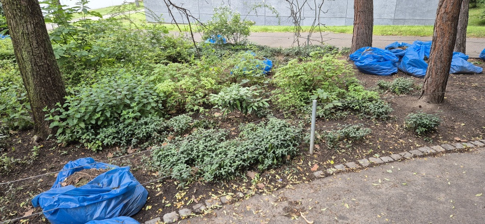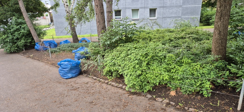 jiz skoro týden jsou tu stale tyto pytle od okamziku, kdy pracovnici zahradnickych sluzeb cistily tuto cast.