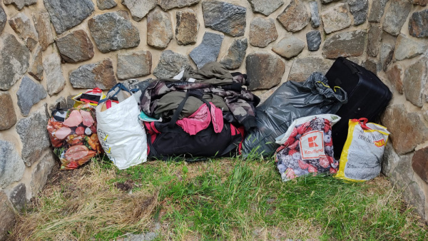 Odložené věci zřejmě bezdomovci na cyklostezce za domem Hartigova 45a.