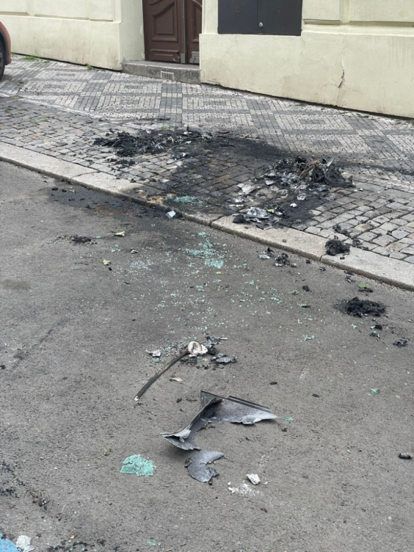uklid po požáru v Bořivojova, naproti domu 49. prosím o řádný uklid zbytku, zameteni skel co nejdříve to půjde. dekuji