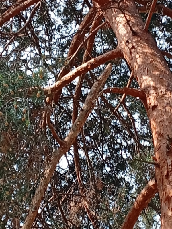 Dětské hřiště v jezerach, ulomená větev borovice. mohlo by to na někoho spadnout