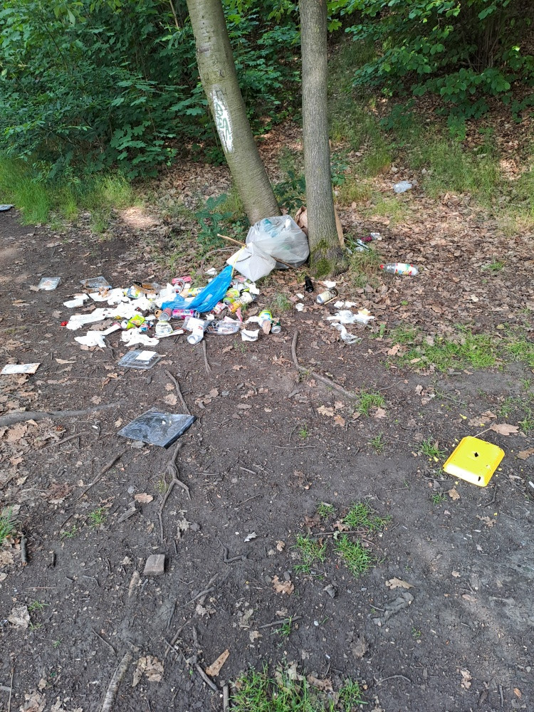 odpadky u nově instalovaného piknikového stolu, zapomnělo se na koš...